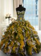 Latest Multi-color Organza Lace Up Sweetheart Sleeveless Floor Length Quinceanera Gown Beading and Ruffles