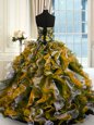 Home >  Quinceanera Dresses >  Fast Delivery Quinceanera Dresses > Latest Multi-color Organza Lace Up Sweetheart Sleeveless Floor Length Quinceanera Gown Beading and Ruffles