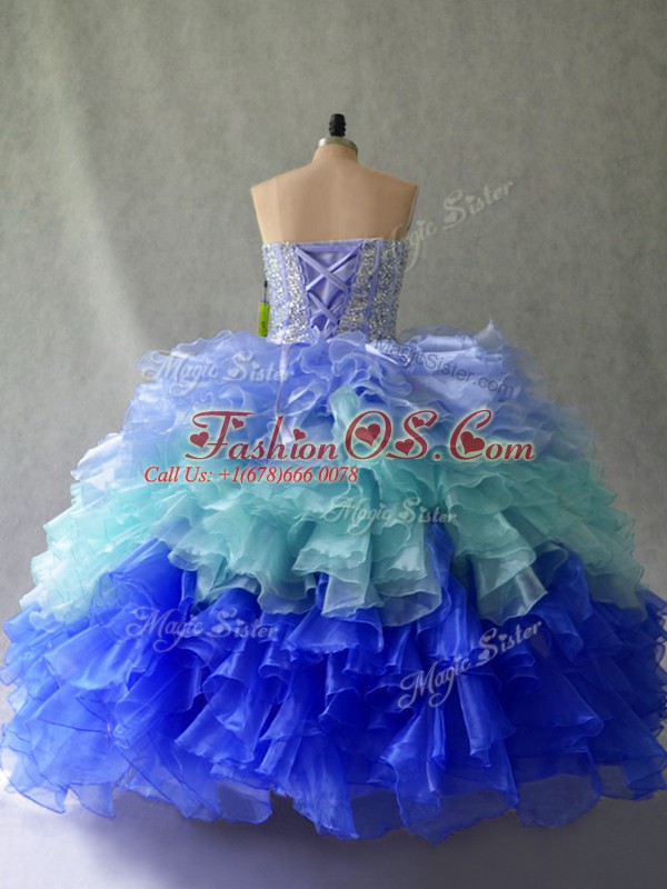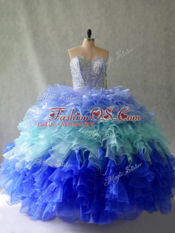 Latest Multi-color Sleeveless Beading and Ruffles Floor Length Sweet 16 Dress