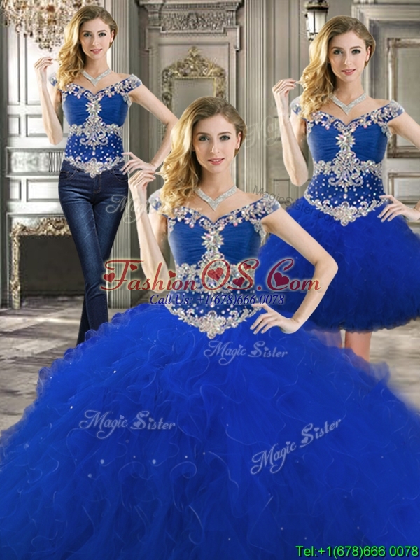Latest Off the Shoulder Cap Sleeves Detachable Quinceanera Dresses with Beading and Ruffles