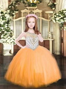 Home >  Special Occasion Dresses >  Pretty Little Girl Pageant Dresses > Latest Orange Tulle Zipper Scoop Sleeveless Floor Length Little Girls Pageant Dress Beading