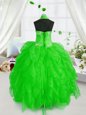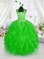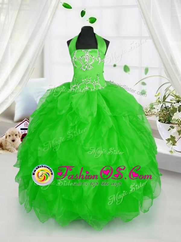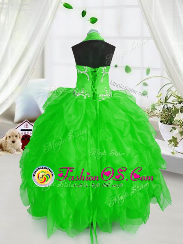 Latest Organza Halter Top Sleeveless Lace Up Appliques and Ruffles Pageant Gowns For Girls in