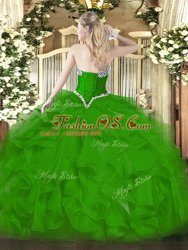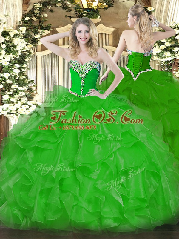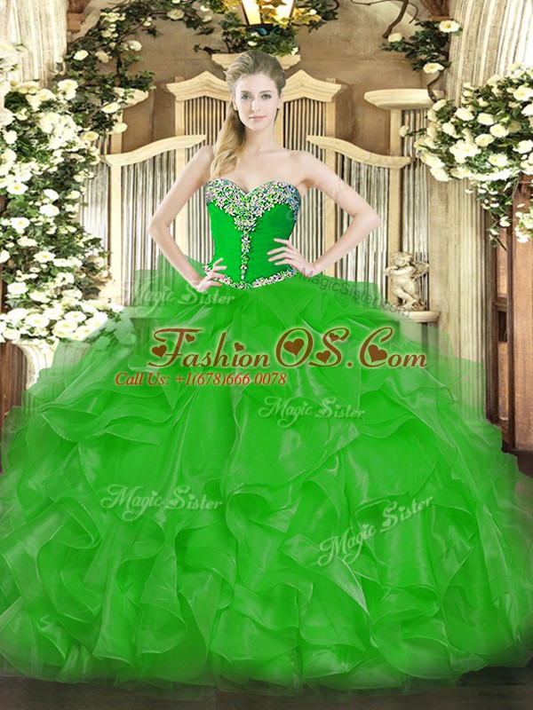 Latest Organza Sleeveless Floor Length Ball Gown Prom Dress and Beading and Ruffles