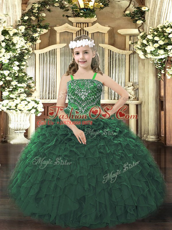 Latest Organza Sleeveless Floor Length Child Pageant Dress and Beading and Ruffles
