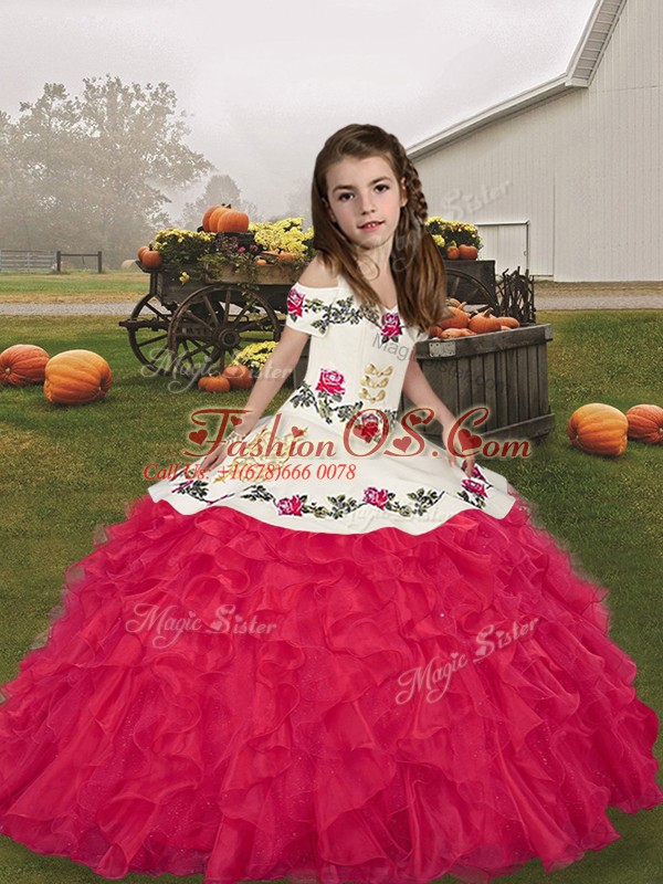 Latest Organza Sleeveless Floor Length Little Girls Pageant Dress and Embroidery and Ruffles