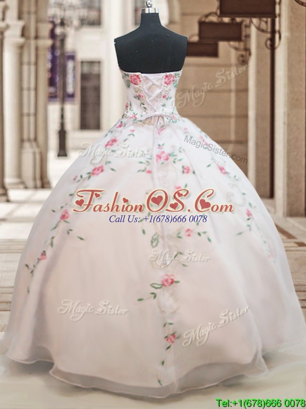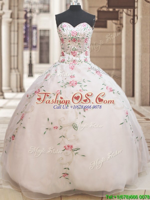 Latest Really Puffy Embroideried and Beaded White Sweet 15 Dress in Organza