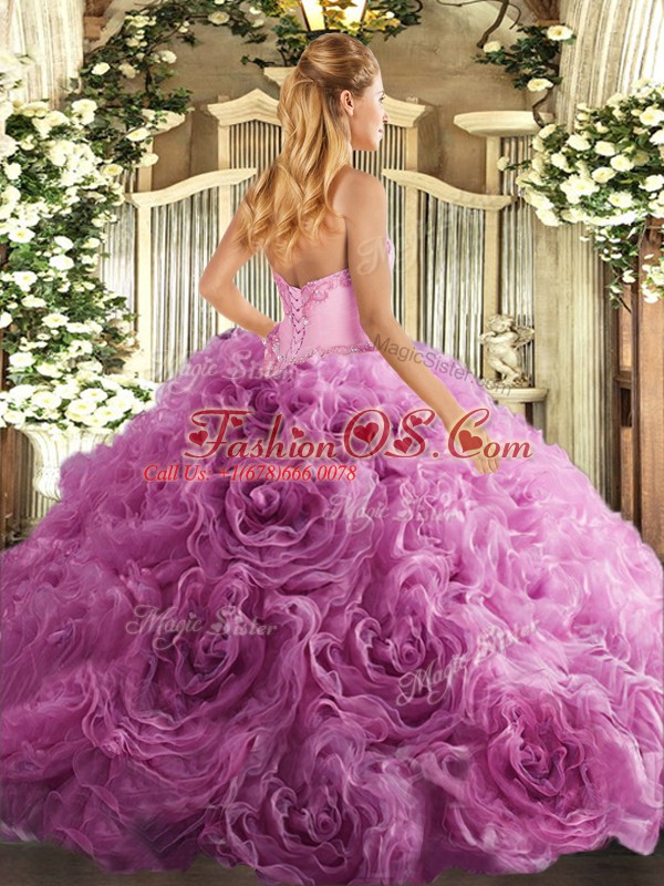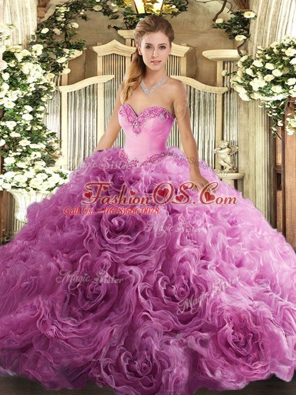 Latest Rose Pink Sweetheart Neckline Beading Quinceanera Dress Sleeveless Lace Up