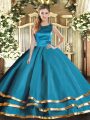 Latest Ruffled Layers 15th Birthday Dress Teal Lace Up Sleeveless Floor Length