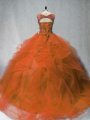 Home >  Quinceanera Dresses >  Beautiful Quinceanera Dresses > Latest Rust Red Ball Gowns Sleeveless Tulle Brush Train Lace Up Beading and Ruffles Quinceanera Dresses