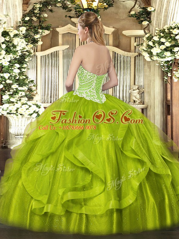 Latest Rust Red Organza Lace Up Ball Gown Prom Dress Sleeveless Floor Length Beading and Ruffles