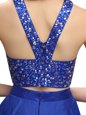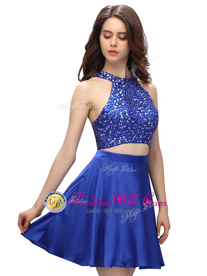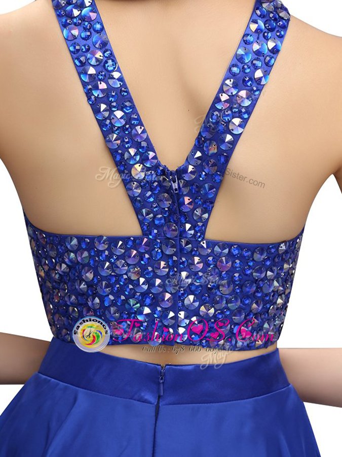 Latest Scoop Sleeveless Mini Length Beading Zipper Club Wear with Royal Blue