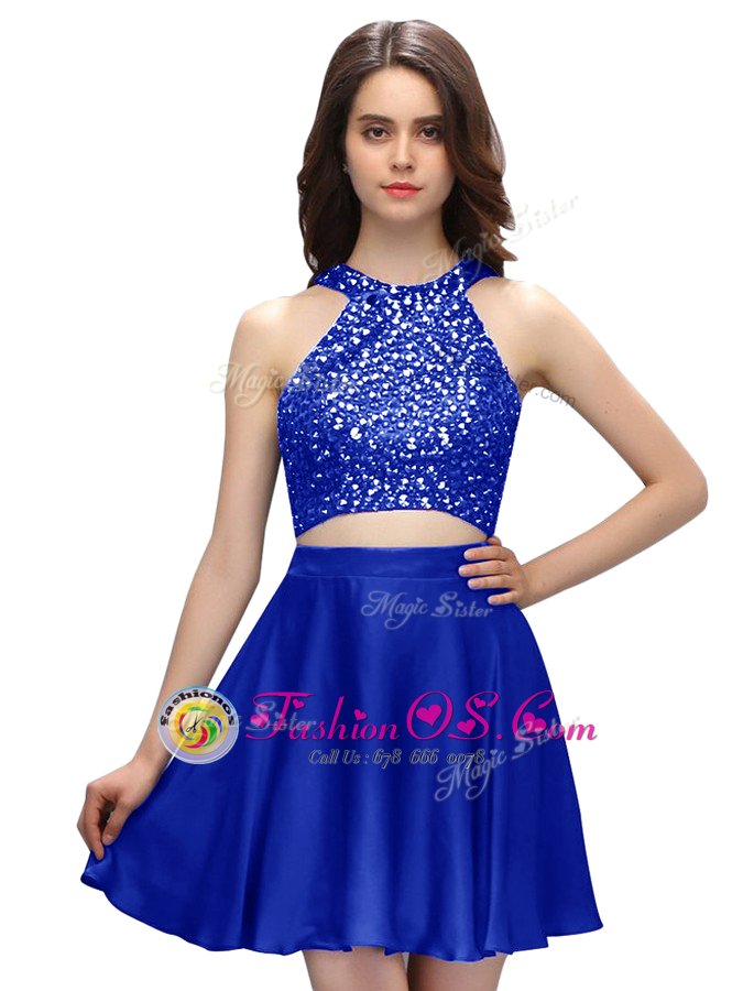 Home >  Special Occasion Dresses >  Cocktail Dresses > Latest Scoop Sleeveless Mini Length Beading Zipper Club Wear with Royal Blue