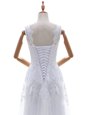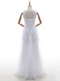 Latest Scoop White Tulle Lace Up Bridal Gown Sleeveless With Brush Train Lace and Appliques