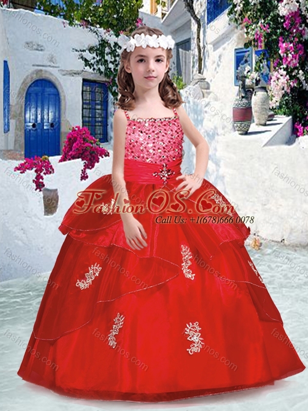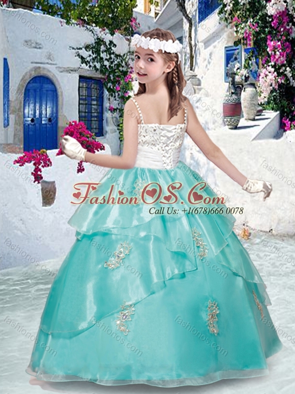 Latest Spaghetti Straps Little Girl Pageant Dresses with Appliques and Beading