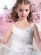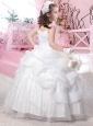 Latest Straps Ball Gown Flower Girl Dress with Beading and Pick Ups