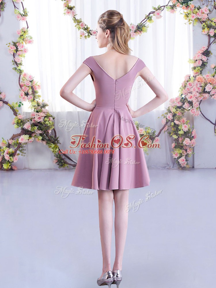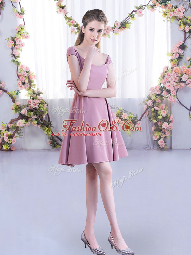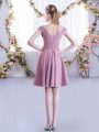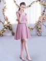 Latest Straps Cap Sleeves Dama Dress for Quinceanera Mini Length Ruching Pink Chiffon