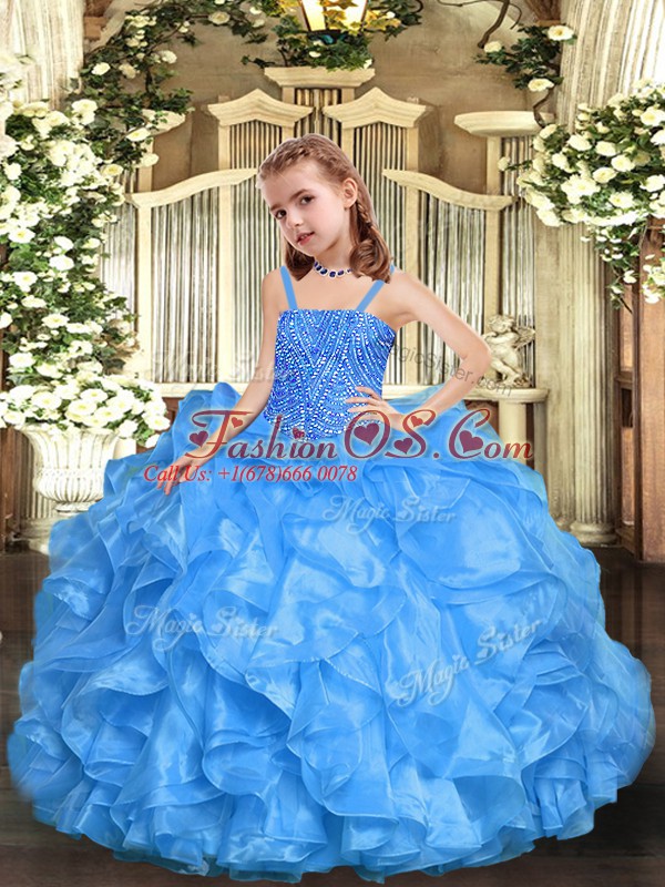 Latest Straps Sleeveless Organza Girls Pageant Dresses Beading and Ruffles Zipper