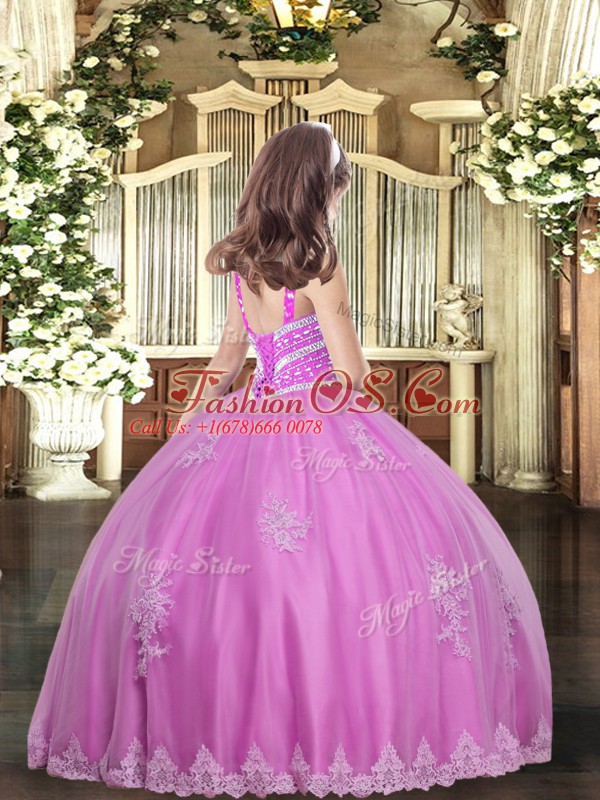 Home >  Special Occasion Dresses >  Beautiful Kids Pageant Dresses > Latest Straps Sleeveless Tulle Pageant Dress for Teens Appliques Lace Up
