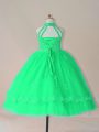 Latest Turquoise Ball Gowns Tulle High-neck Sleeveless Beading and Appliques Floor Length Lace Up Little Girls Pageant Gowns