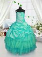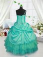 Latest Turquoise Strapless Neckline Beading and Ruffled Layers and Pick Ups Little Girls Pageant Gowns Sleeveless Lace Up