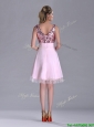 Latest V Neck Sequined Decorated Bodice Prom Dress in Baby Pink