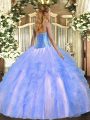 Lavender 15th Birthday Dress Military Ball and Sweet 16 and Quinceanera with Beading and Ruffles Sweetheart Sleeveless Lace Up