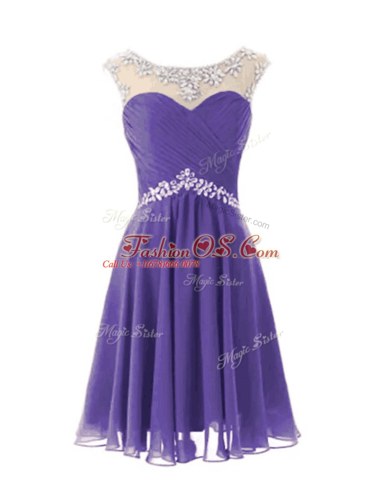 Lavender A-line Scoop Cap Sleeves Chiffon Knee Length Zipper Beading Homecoming Gowns