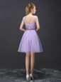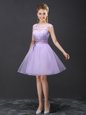 Lavender A-line Scoop Sleeveless Organza Mini Length Lace Up Lace Wedding Party Dress