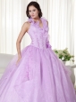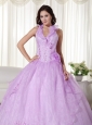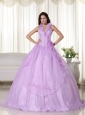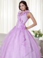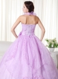 Home >  Quinceanera Dresses >  Pretty Quinceanera Dresses > Lavender Ball Gown Halter Floor-length Chiffon Embroidery and Beading Quinceanera Dress