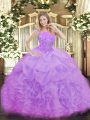 Lavender Ball Gowns Beading and Ruffles and Pick Ups Quinceanera Gowns Zipper Organza Sleeveless Floor Length