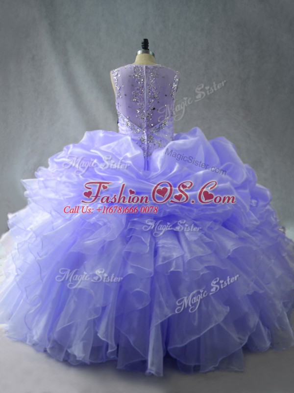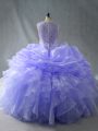 Lavender Ball Gowns Beading and Ruffles Sweet 16 Quinceanera Dress Zipper Organza Sleeveless Floor Length
