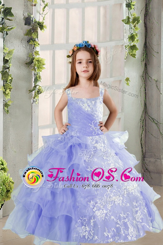 Home >  Special Occasion Dresses >  New Style Little Girl Pageant Dresses > Lavender Ball Gowns Organza Square Sleeveless Lace and Ruffled Layers Floor Length Lace Up Little Girl Pageant Gowns