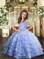 Lavender Ball Gowns Organza Straps Sleeveless Ruffled Layers Floor Length Lace Up Pageant Gowns For Girls
