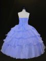 Lavender Ball Gowns Organza Sweetheart Sleeveless Ruffles and Hand Made Flower Floor Length Lace Up 15 Quinceanera Dress