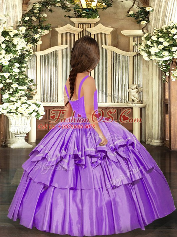 Lavender Ball Gowns Straps Sleeveless Floor Length Lace Up Ruffled Layers Little Girls Pageant Gowns