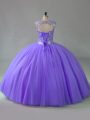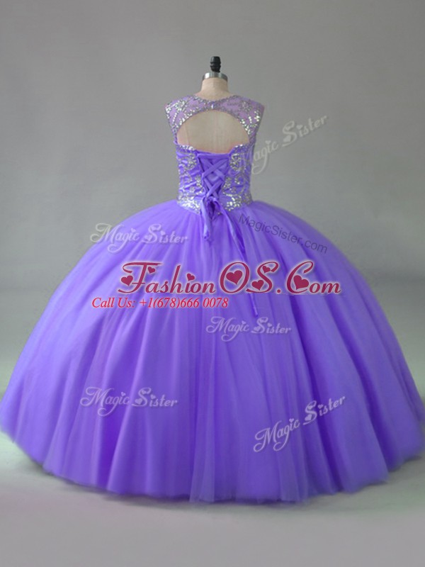 Lavender Ball Gowns Tulle Scoop Sleeveless Beading Lace Up 15th Birthday Dress