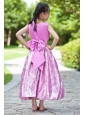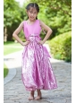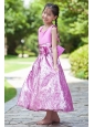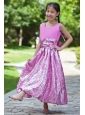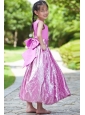 Lavender Column / Sheath Scoop Flower Girl Dress Ankle-length Satin Bow