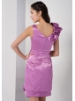 Home >  Bridesmaid Dresses >  Simple Bridesmaid Dresses > Lavender Column Square Bridesmaid Dress Satin Mini-length Hand Made Flowers