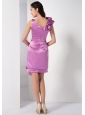 Romantic amaranth is the best way to show girl's shy beauty. This one is a great example of what we mean. The fitted bodice features two wide asymmetrical straps, one is heavily ruffled and another is pure with no decoration. The speciality of this design is the sophiscated hem with a chic bowknot on the left leg. A zipper up on the back finishes this fabulous design. With this unique dress, you will light up your party.