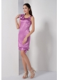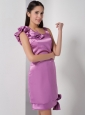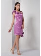 Lavender Column Square Bridesmaid Dress Satin Mini-length Hand Made Flowers