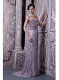 Home >  Evening Dresses > Lavender Column Sweetheart Evening Dress Special Fabric and Chiffon Beading Brush Train