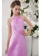 Lavender Empire High-neck Knee-length Satin Bridesmaid Dress