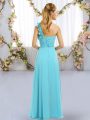 Lavender Empire One Shoulder Sleeveless Chiffon Floor Length Lace Up Hand Made Flower Dama Dress for Quinceanera