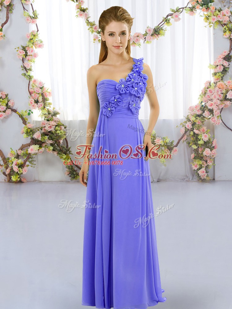 Home >  Special Occasion Dresses >  Dama Dresses 2019 > Lavender Empire One Shoulder Sleeveless Chiffon Floor Length Lace Up Hand Made Flower Dama Dress for Quinceanera