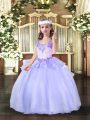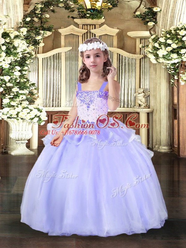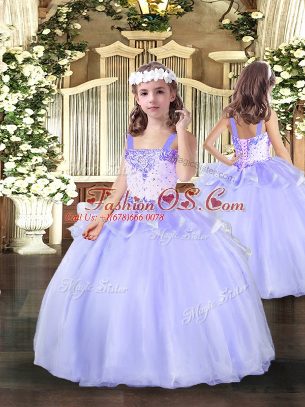 Lavender Girls Pageant Dresses Party and Wedding Party with Beading Straps Sleeveless Lace Up
