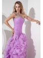 Lavender High-low One Shoulder Celebrity Dress Beading Column / Sheath Organza