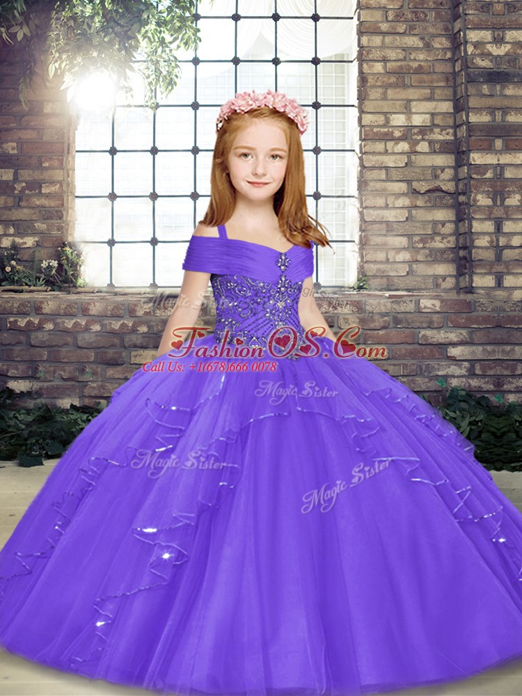 Home >  Special Occasion Dresses >  Beautiful Kids Pageant Dresses > Lavender Lace Up Glitz Pageant Dress Beading Sleeveless Floor Length