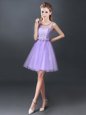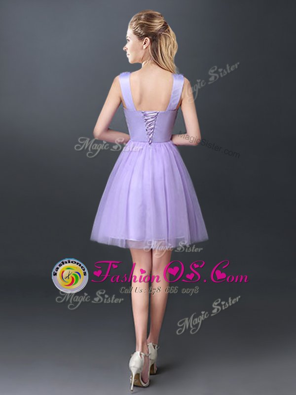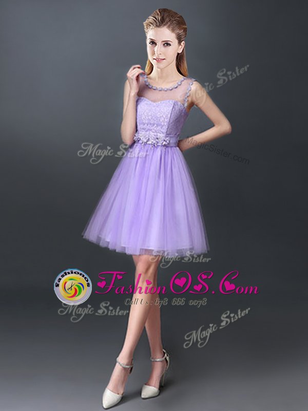 Lavender Lace Up Scoop Lace Damas Dress Tulle Sleeveless