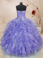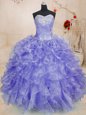 Lavender Lace Up Sweetheart Beading and Ruffles 15th Birthday Dress Organza Long Sleeves