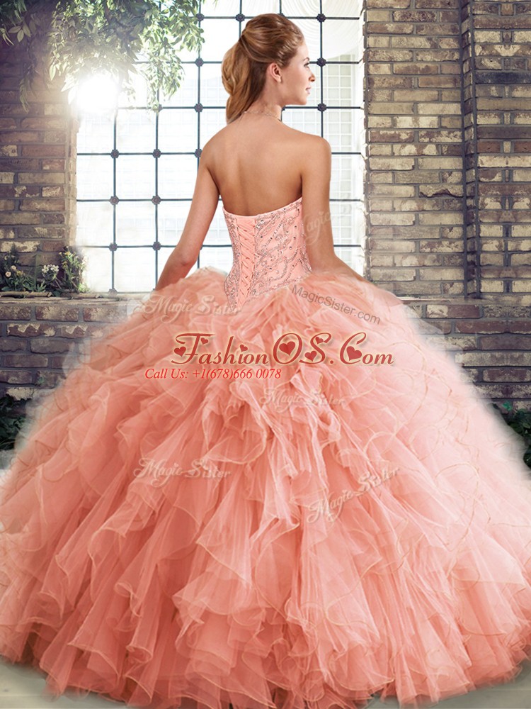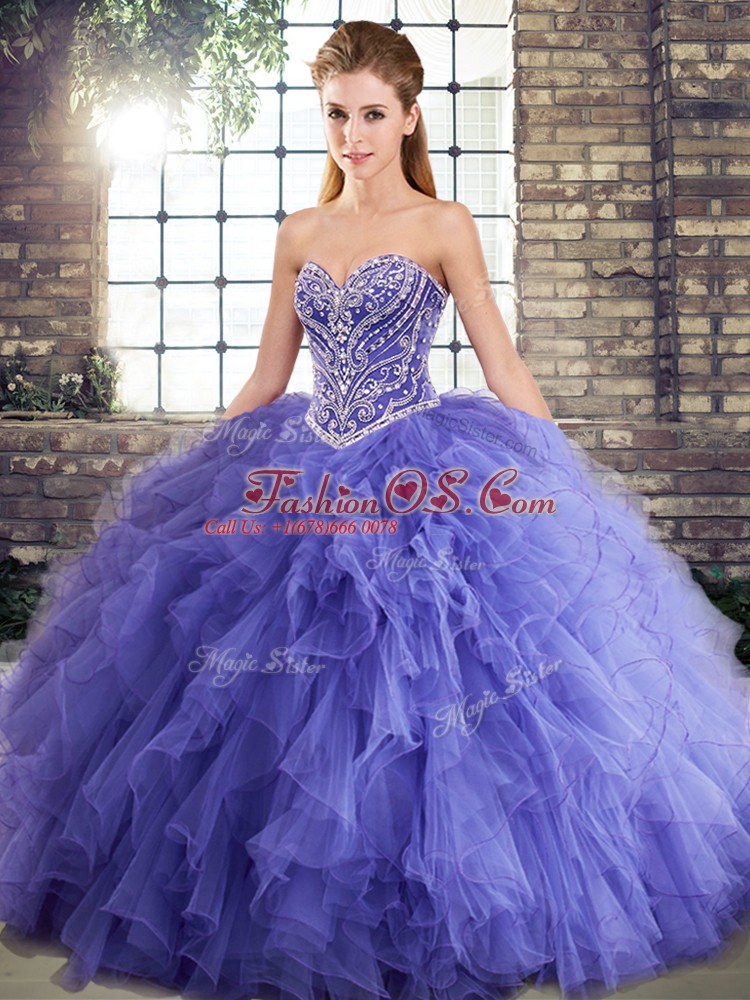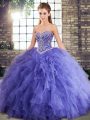 Lavender Lace Up Sweetheart Beading and Ruffles 15th Birthday Dress Tulle Sleeveless
